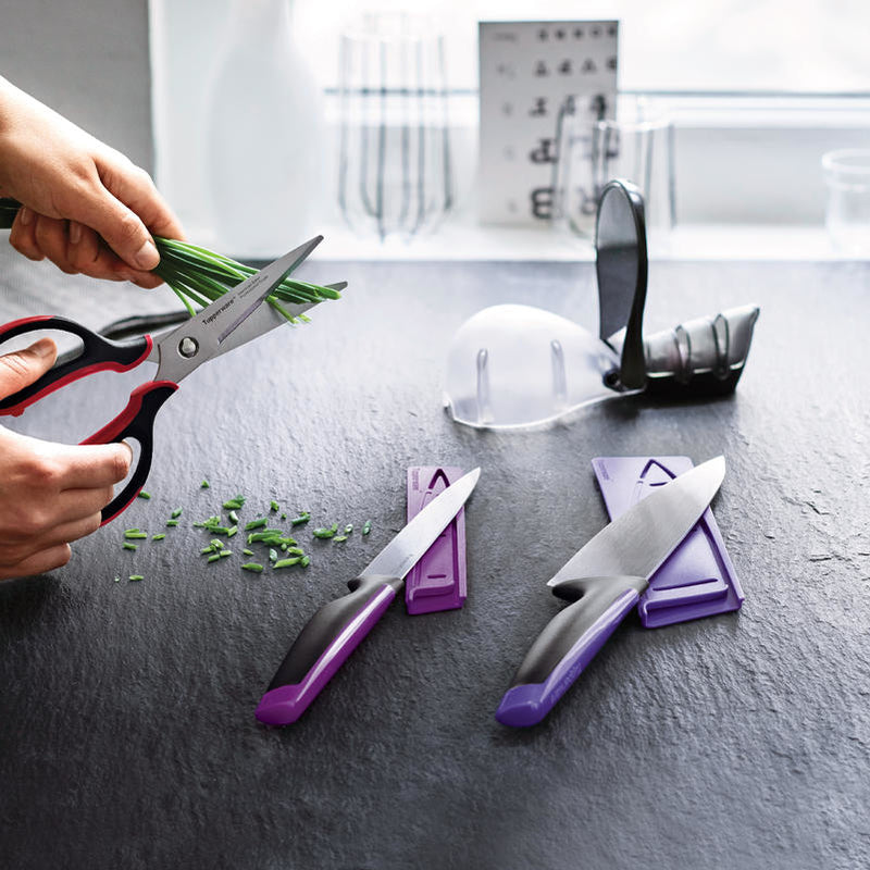 Materiaal: Hoogwaardig Tupperware kunststof & roestvrij metalen messen