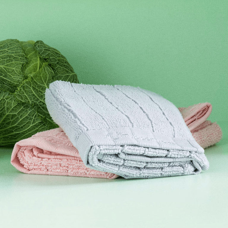 Gebruik ze droog of licht vochtig – wat jij het prettigst vindt. Zelf gebruik ik ze graag droog, direct na de was, dan zijn ze op hun best. Even uitschudden en je merkt meteen hoe luchtig en absorberend ze zijn. Na gebruik gooi ik ze gewoon in de wasmachine op 60°C, en ze komen er weer fris en zacht uit. De vezels blijven mooi, was na was, zonder hun opnamekracht te verliezen.